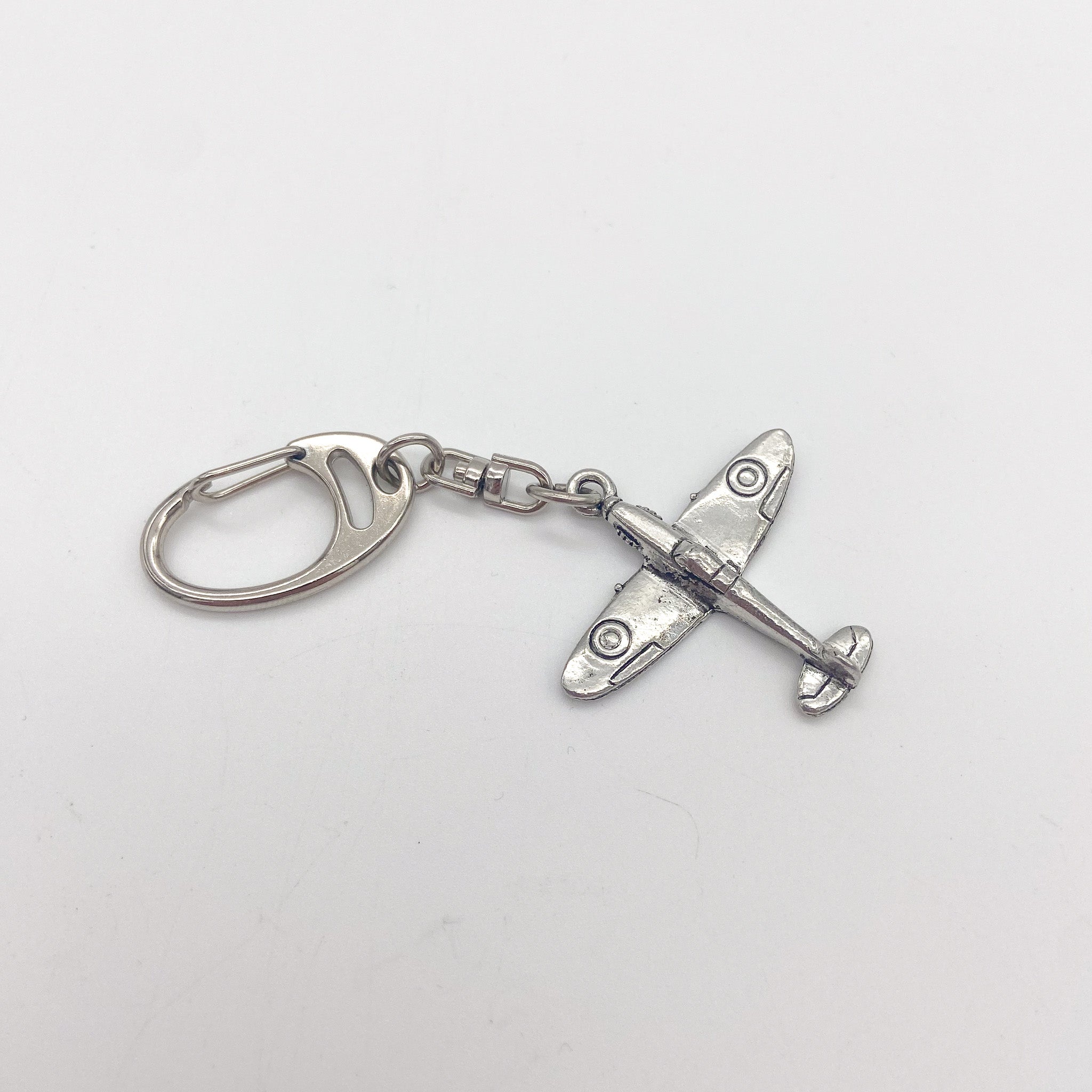 Beautiful, high quality pewter keyring in the shape of a Spitfire.