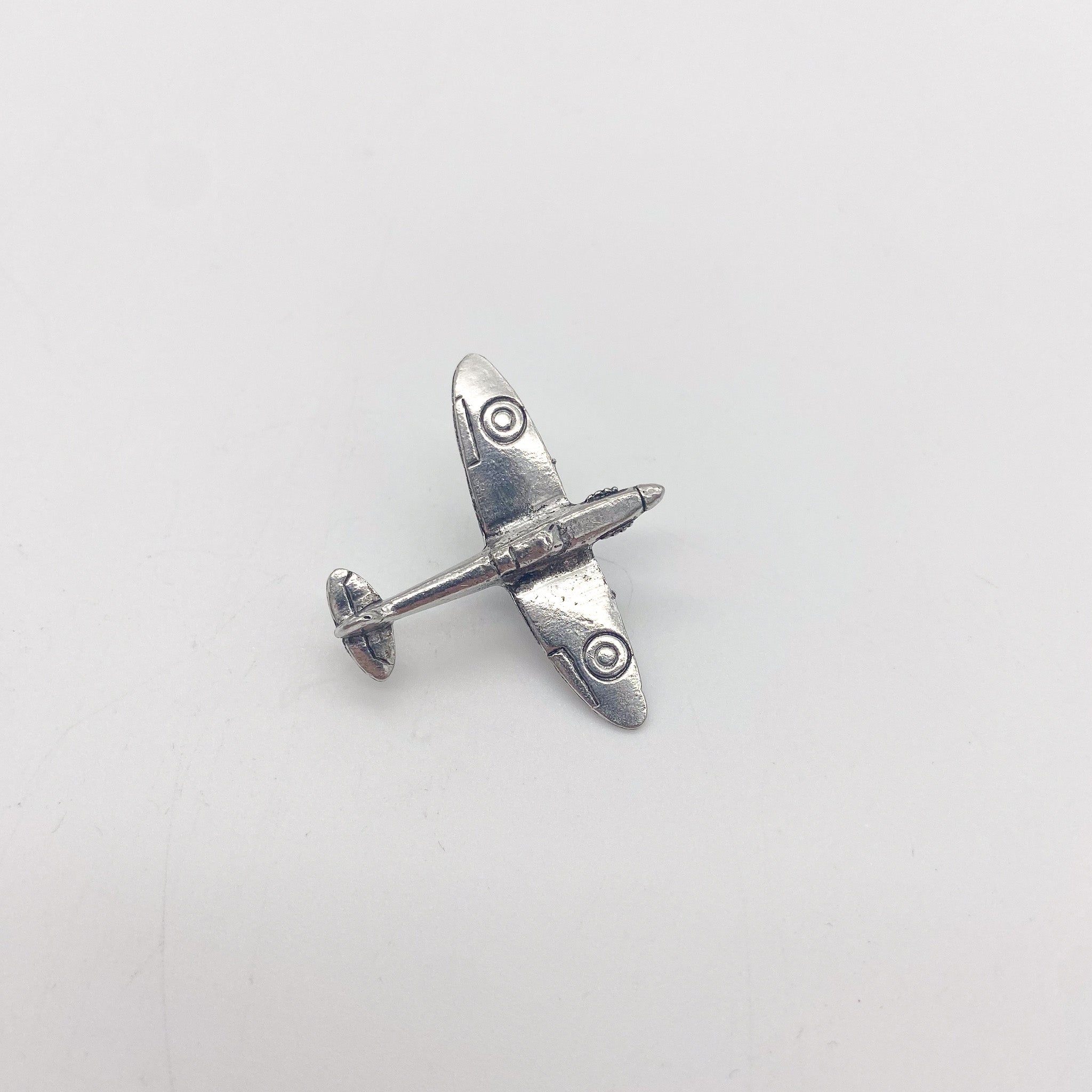 - Beautiful, high quality pewter lapel pin in the shape of a Spitfire.