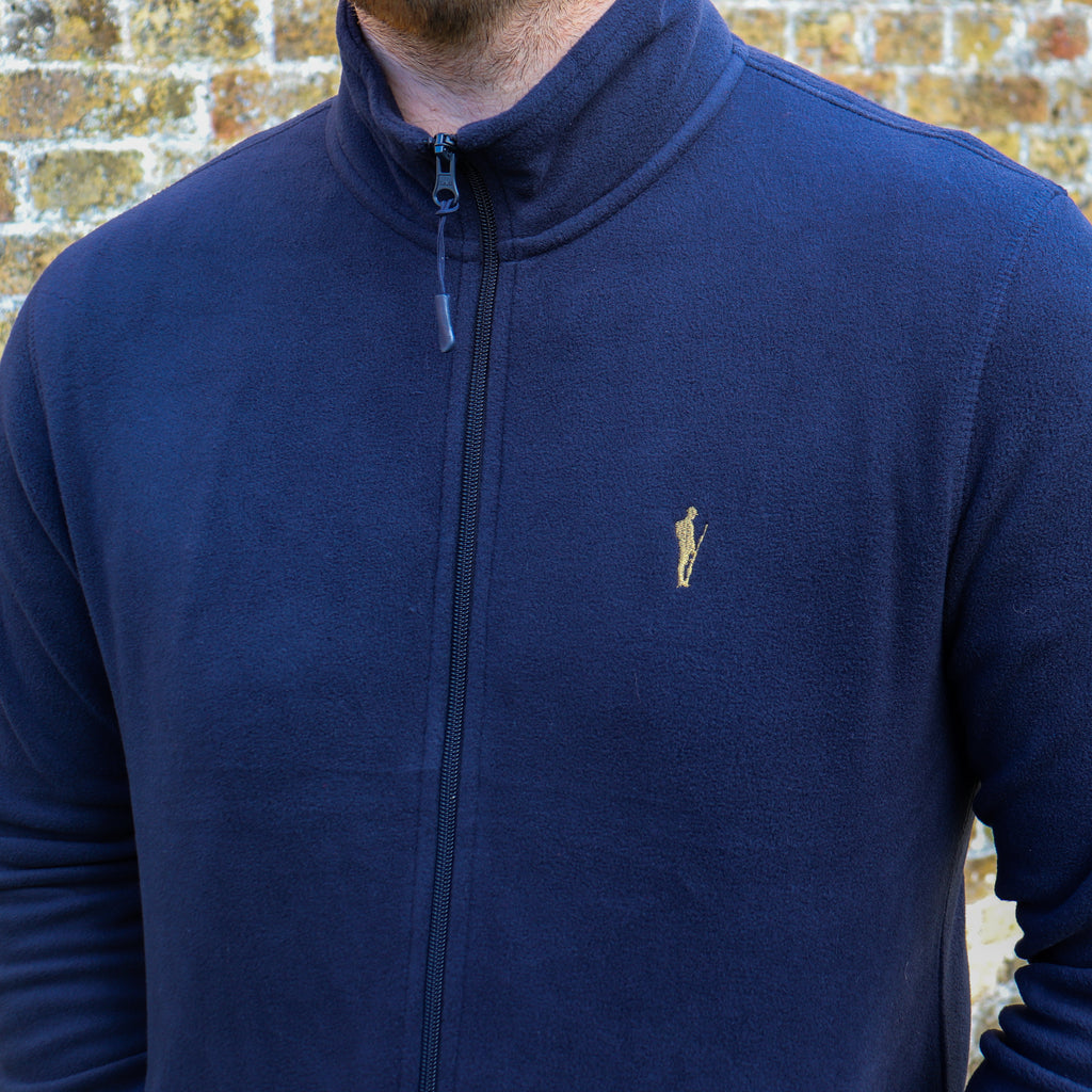 - This navy unisex fleece features our own Tommy silhouette in gold embroidery on the chest