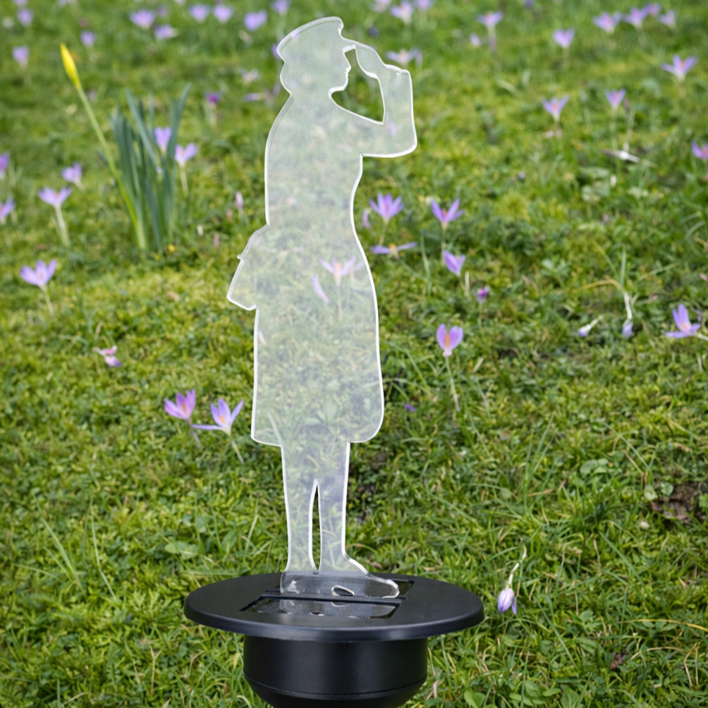 Enhance your outdoor space with the Solar Garden Woman in War. A symbol of respect and Remembrance to honour those who have served.