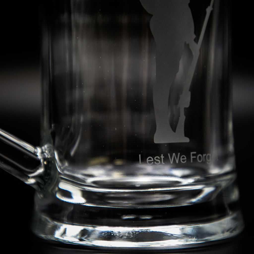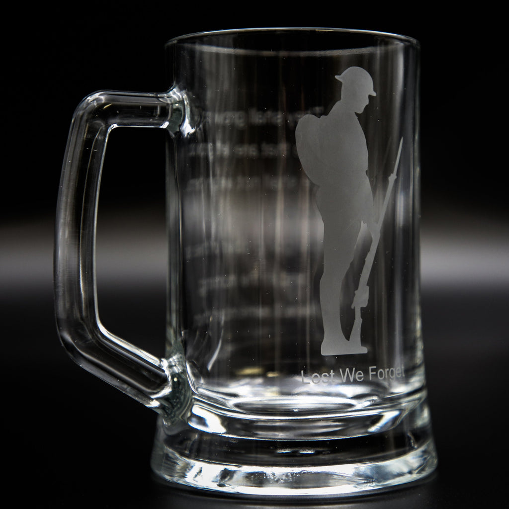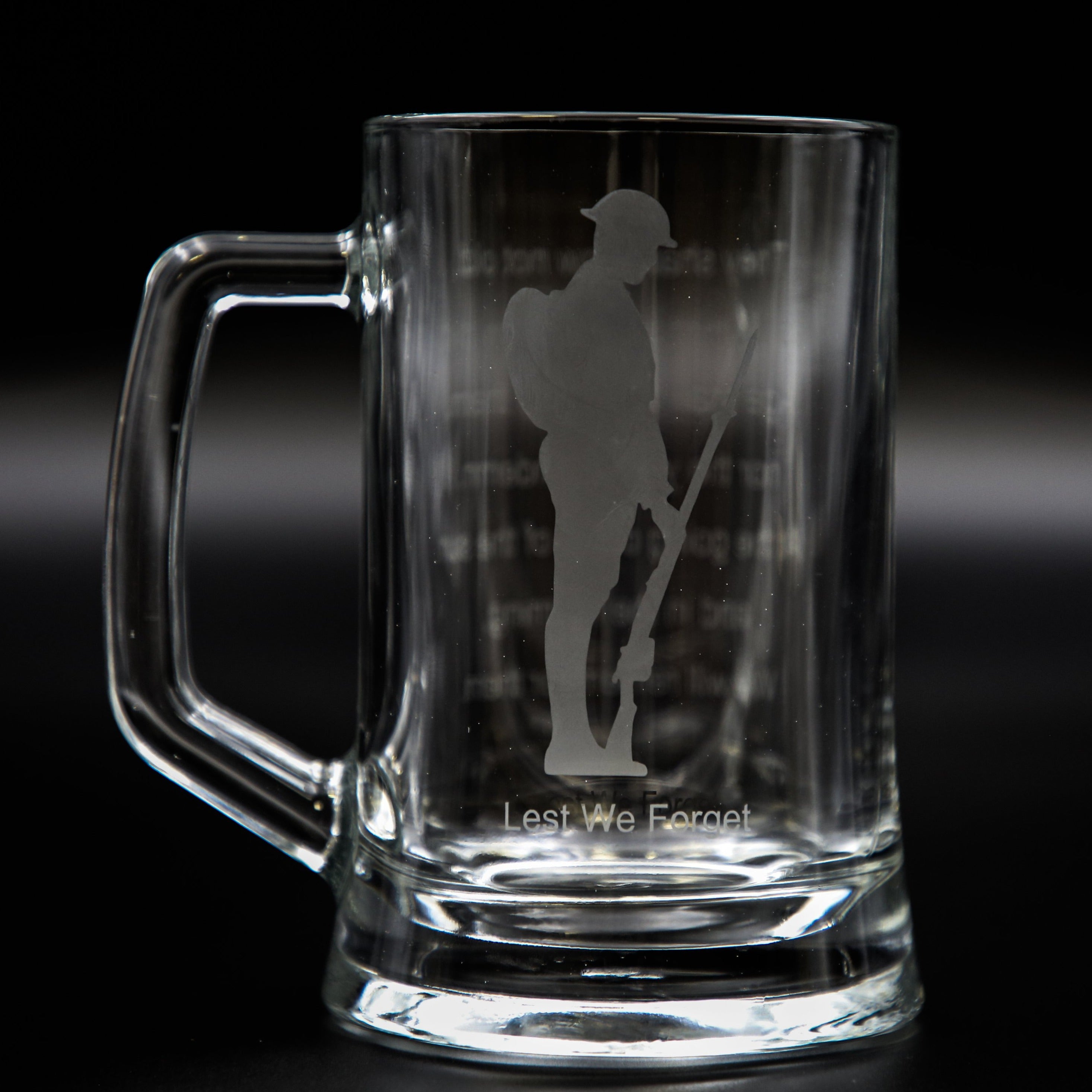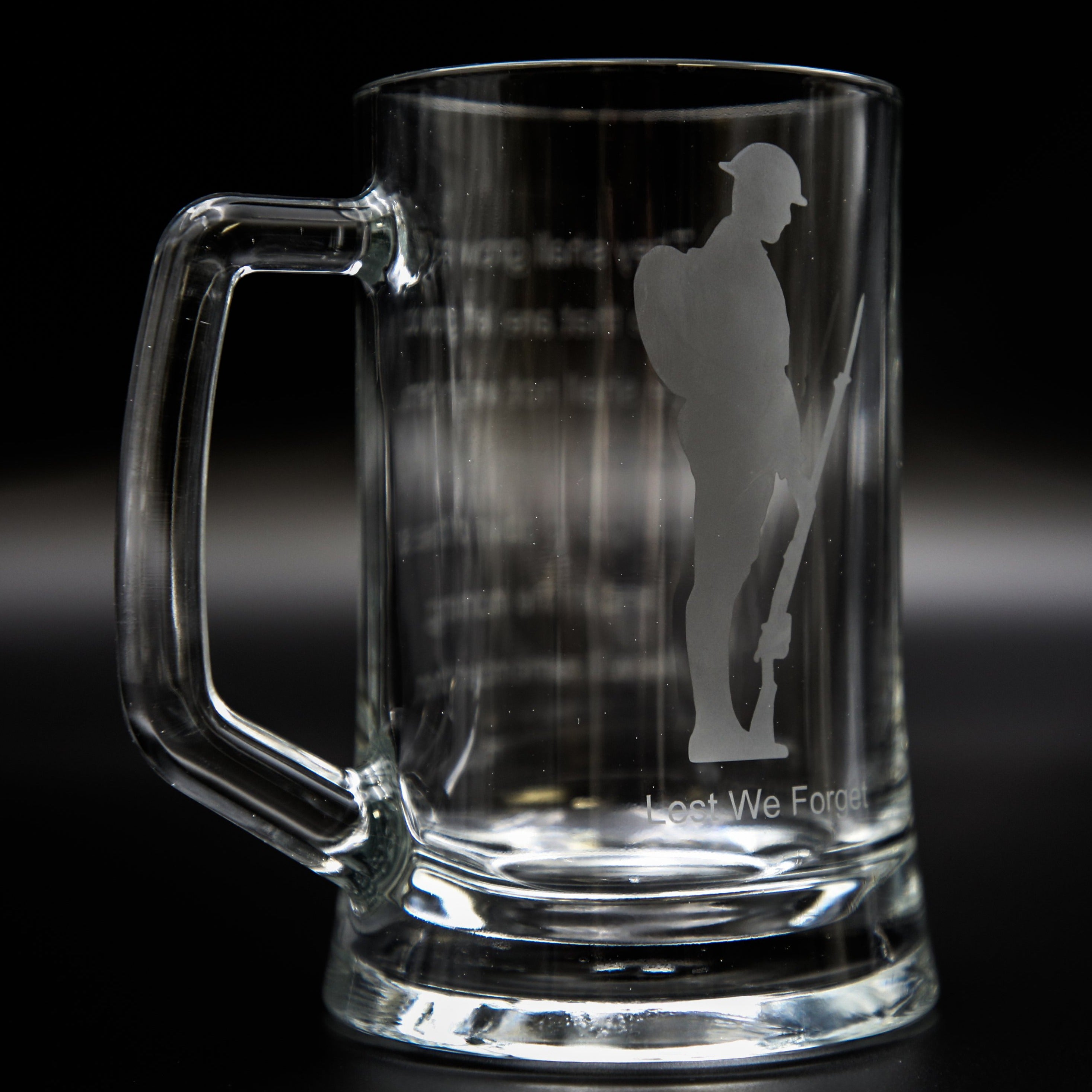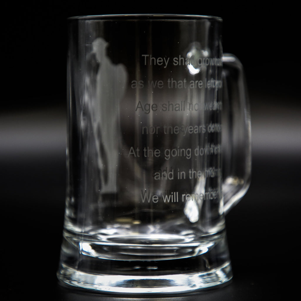• Traditional, clear glass design with engraved Tommy and excerpt from the poem 'For the Fallen' by Laurence Binyon.