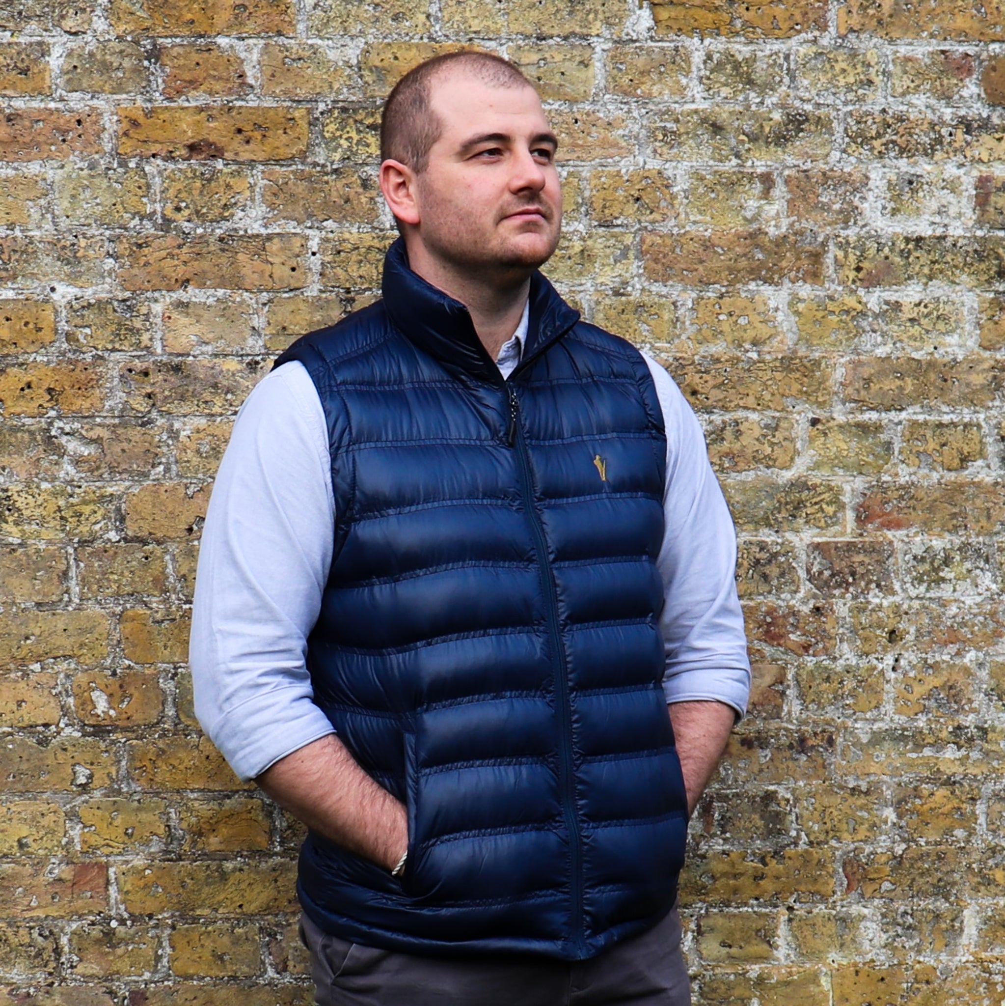 Wear your support for our nation's armed forces with our Navy Blue Tommy Puffer Gilet
