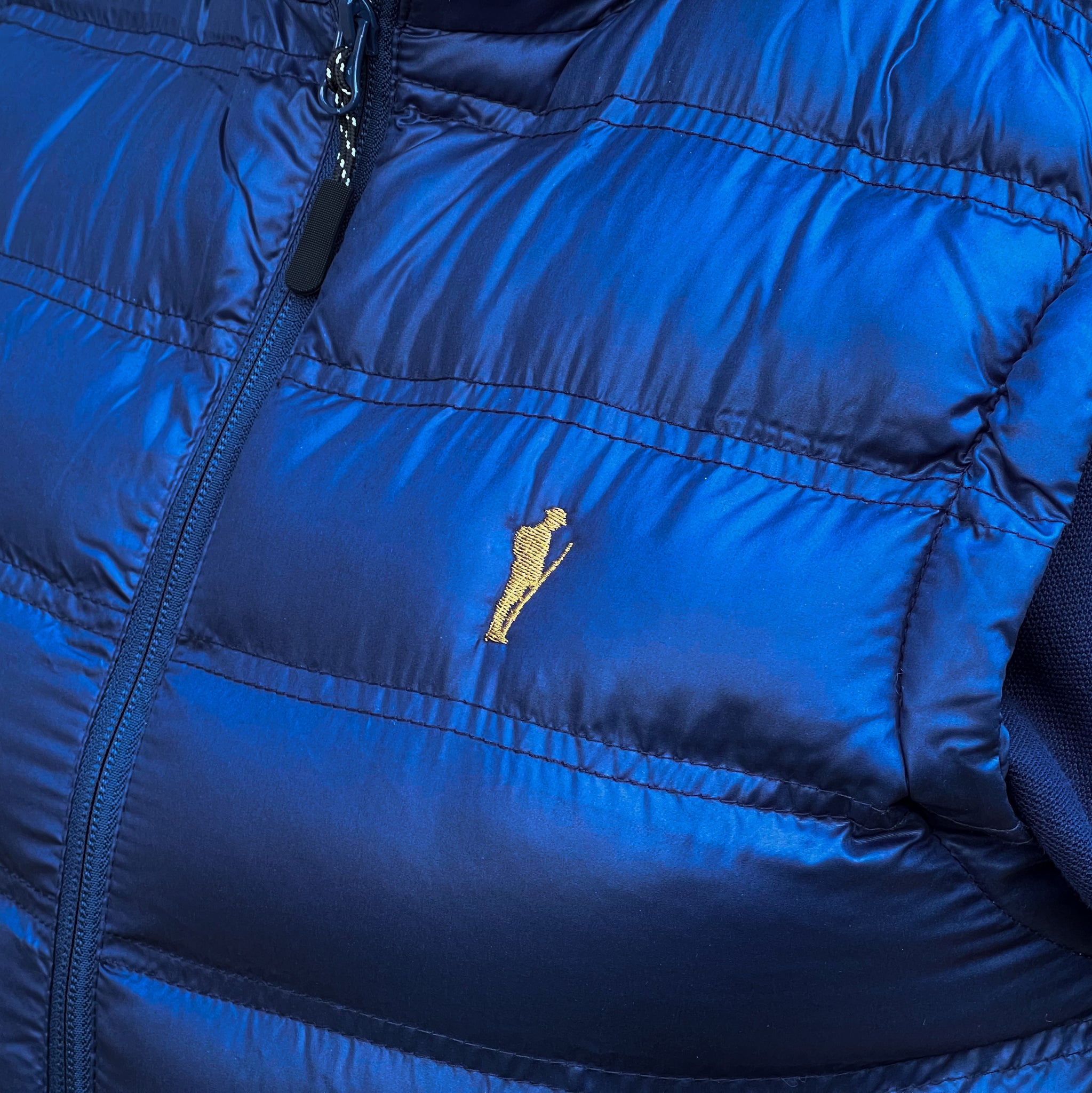 - This premium navy puffer gilet features our own Tommy silhouette in gold embroidery on the chest